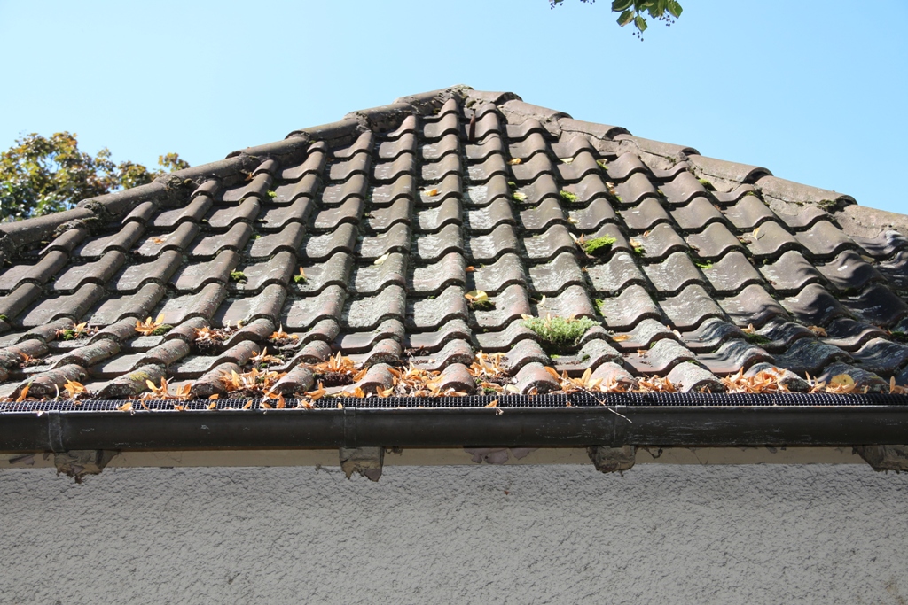 Laub und Moos von schmutzigen Dächern, Nadeln umstehender Bäume sowie Blütenpollen oder der Abrieb von Dachpappen sind der Hauptgrund für ein schleichende Verstopfungder Dachrinnen.